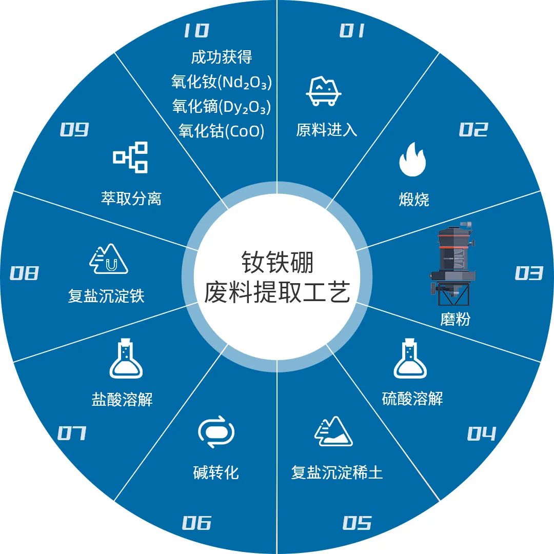 隨著釹鐵硼磁體在新能源汽車、風(fēng)力發(fā)電、醫(yī)療設(shè)備等領(lǐng)域廣泛應(yīng)用,釹鐵硼廢料的產(chǎn)量逐漸增加。而工信部發(fā)布的《稀土管理?xiàng)l例》征求意見稿中明確指出,要鼓勵以綠色環(huán)保技術(shù)對含有稀土的二次資源進(jìn)行回收利用。